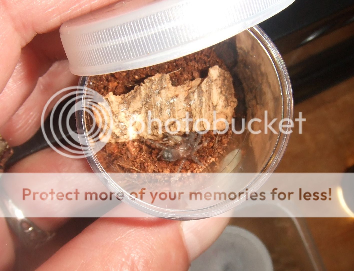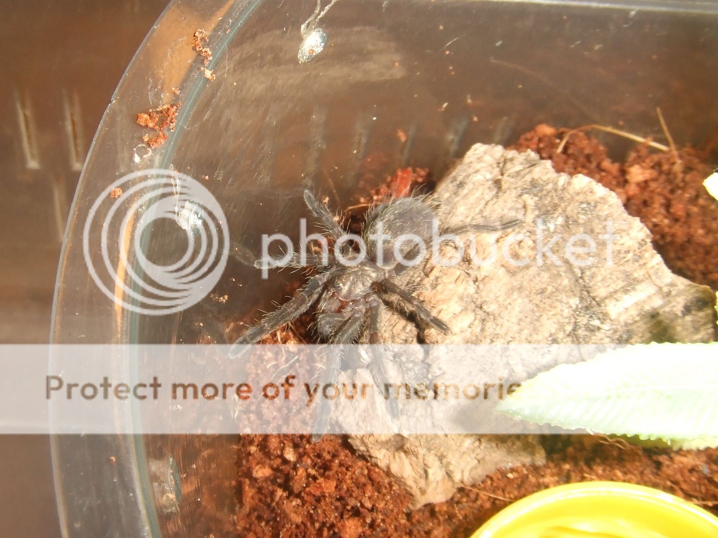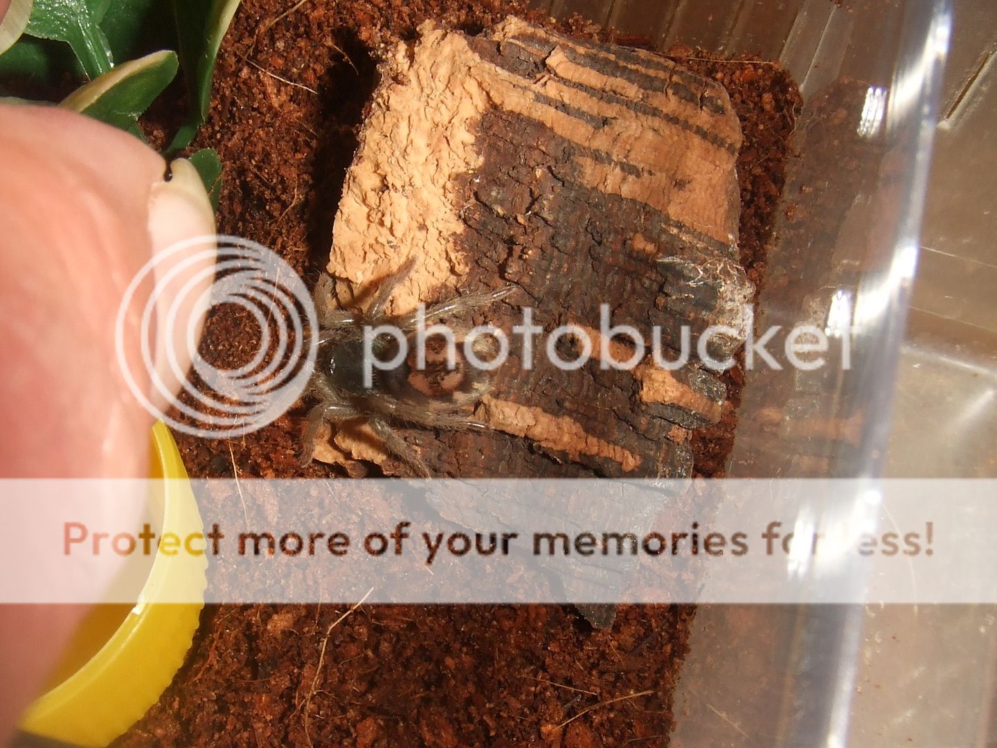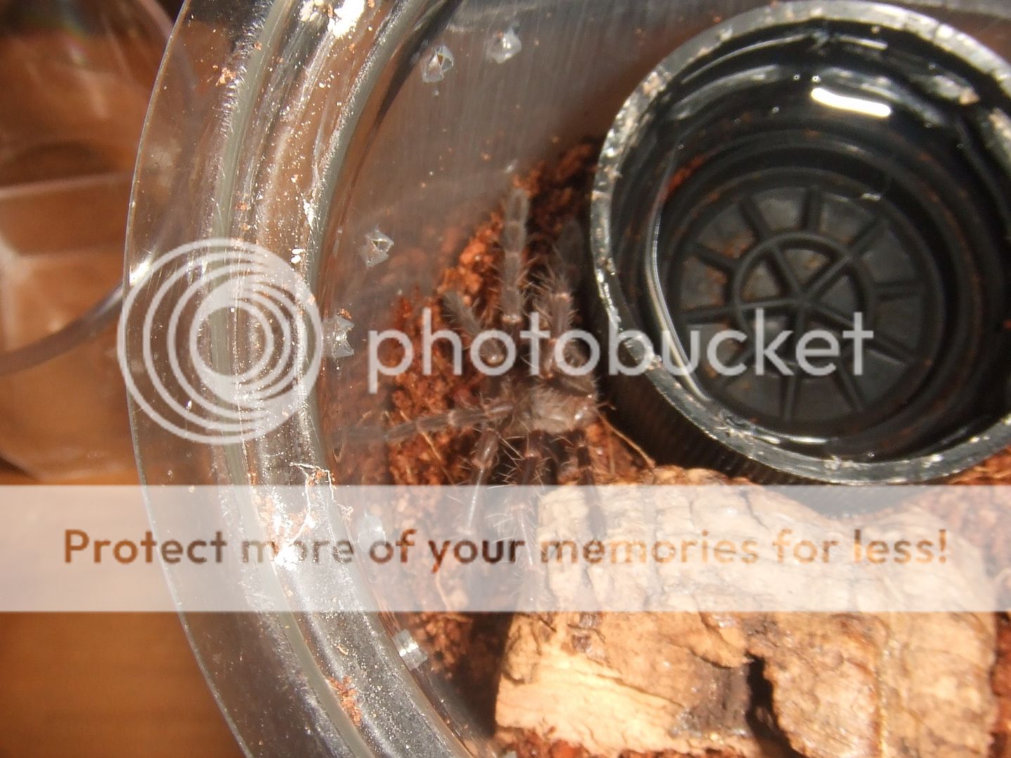 Brachypelma albopilosum Nicaragua, Nicarao. Such a tiny one. This was the only picture I managed to get as it dived straight under the cork bark.
