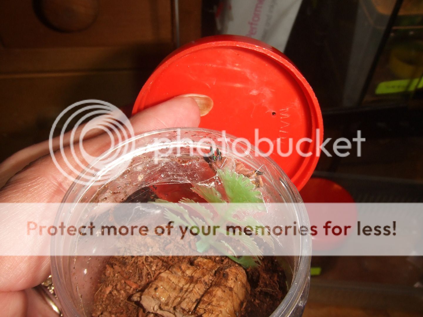 I've had my Blue Fang (0.5" dls) for a month now, it's feeding well and has calmed down quite a lot but it hasn't burrowed at all, in fact it spends all its time at the top of the vial just below the lid and has now begun to web up there. I'm sure you can see my confusion so I wondered if anyone else had the same experience with their E. cyanognathus?